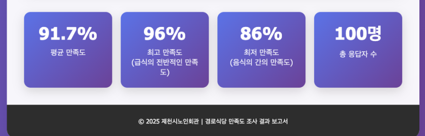 2025년 경로식당 만족도 조사 결과를 아래와 같이 게시합니다.