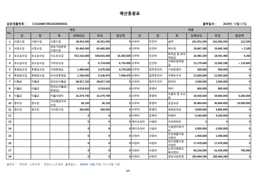 2024년도 제2회 추가경정예산서를 아래와 같이 공고합니다.