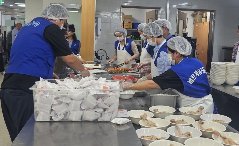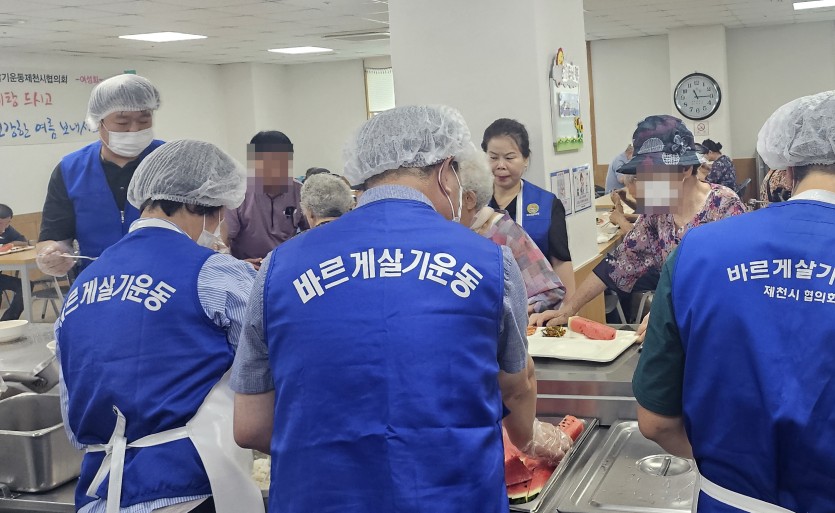 바르게살기운동제천시협의회 여성회, 제천시노인회관에 장각·수박 후원 및 식당 봉사 펼쳐