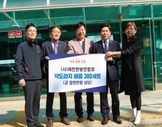제천한방연합회가 어버이날을 맞아 제천시노인회관에 약도라지 배즙 300세트를 후원하였습니다. 이번 후원은 약 천만원 상당으로, 제천시장과 제천한방연합회장, 사무국장, 제천시지회지회장 등 다수의 인사들이 참석한 후원식에서 진행되었습니다.