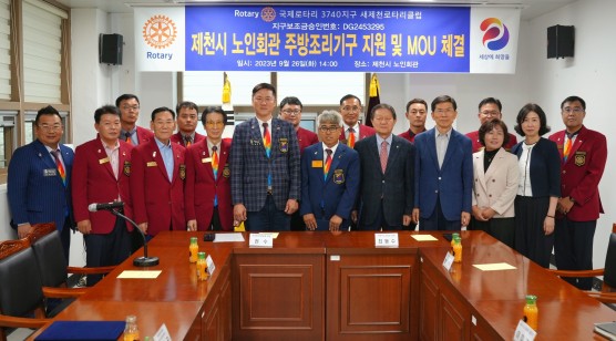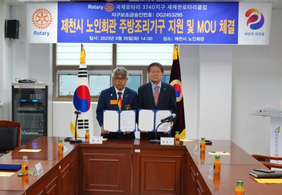새제천로타리클럽은 9월 26일 화요일에 제천시노인회관에 주방조리기구(오븐)를 지원하고 MOU를 체결했다.