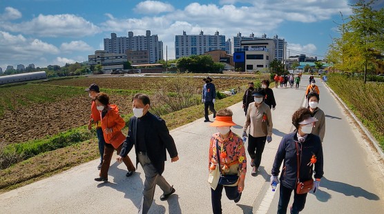 또한 거리두기 해제로 어버이날 행사와 더불어 사전신청자 120여명과 함께 삼한의 초록길 걷기행사를 진행하였다.