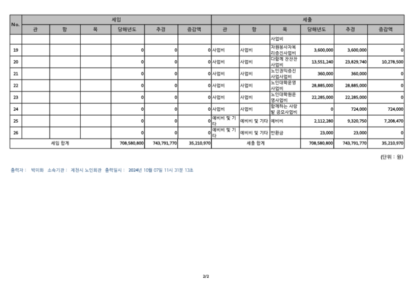 2024년도 제2회 추가경정예산서를 아래와 같이 공고합니다.